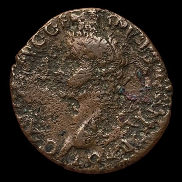 Este ejemplar de moneda no sólo posee una gran valía por el emperador en sí (uno de los gobernantes romanos más controvertidos y perversos), sino que también realza su valoración por constituir un testimonio palpable de una imposición decretada por el Senado (cuerpo colegiado que poseía la autoridad para decretar -a la muerte de un emperador déspota y odiado por el pueblo- la llamada Damnatio Memoriae o Abolitio nominis), cuya finalidad era la de abolir o borrar - condenando al olvido- su nombre e imagen de todo estamento social, cultural e histórico de Roma.