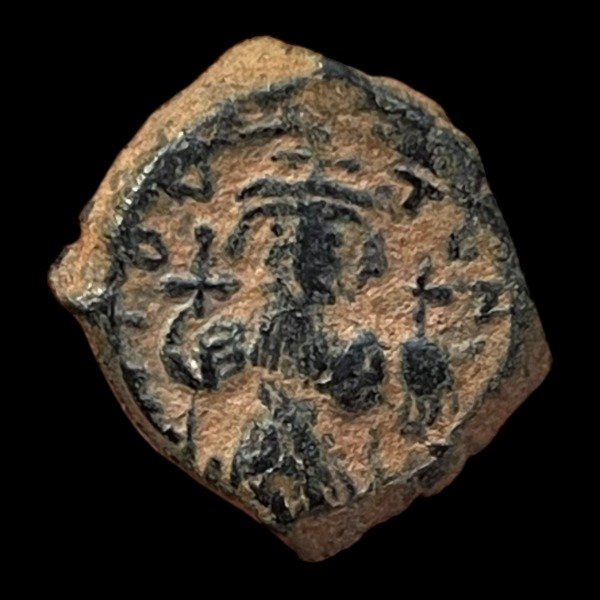 Los llamados Folis "Omeyas-Bizantinos" surgieron durante los siglos VII y VIII en las provincias recientemente conquistadas por los árabes, sobre todo en Siria y Palestina. Estas piezas tomaron como modelo directo los folis bizantinos de Heraclio y sus hijos, conservando la iconografía básica —figuras frontales, grandes letras en el reverso, marcas de ceca— pero ejecutadas con un estilo cada vez más esquemático y local.