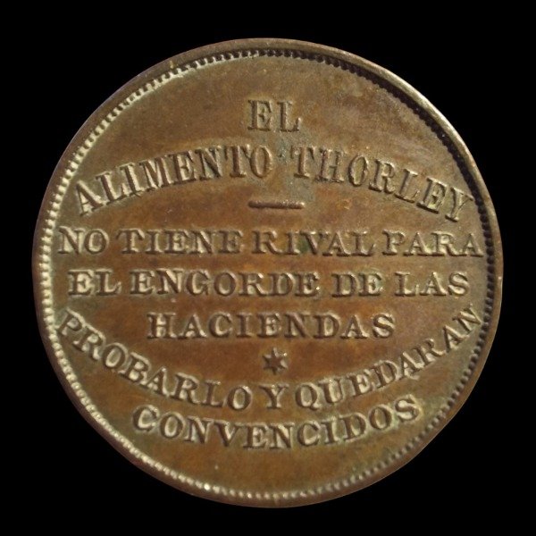 Reverso: EL / ALIMENTO THORLEY / NO TIENE RIVAL PARA / EL ENGORDE DE LAS / HACIENDAS / PROBARLO Y QUEDARAN / CONVENCIDOS