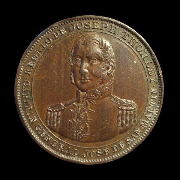 Anverso: REGALO DE JOSEPH THORLEY / CAPITAN GENERAL JOSÉ DE SAN MARTIN
