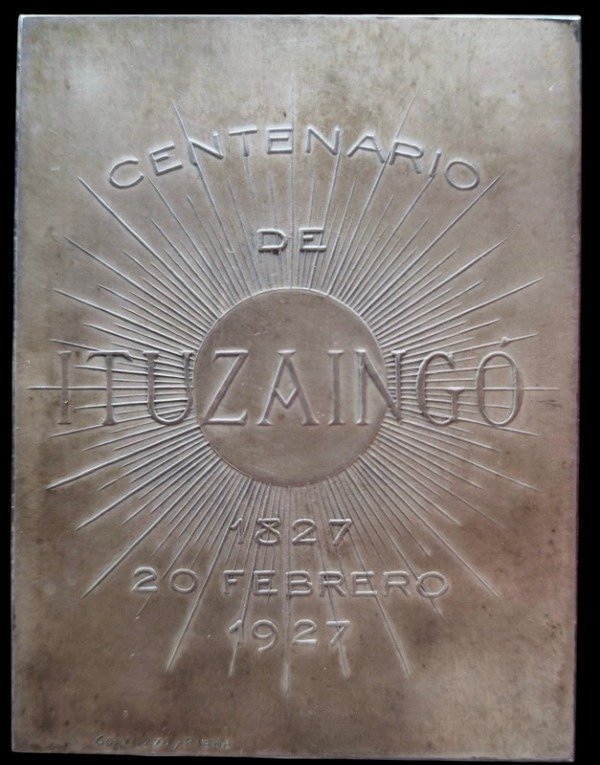 Reverso: CENTENARIO / DE / ITUZAINGO / 1827 / 20 FEBRERO / 1927. Firma: GOTTUZZO Y PIANA