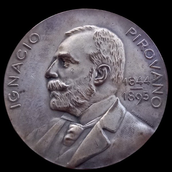 Anverso: IGNACIO PIROVANO / 1844 / 1895. Firma: BELLAGAMBA Y ROSSI