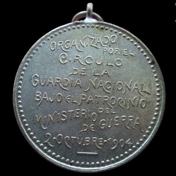 Reverso: ORGANIZADO / POR EL / CIRCULO / DE LA / GUARDIA NACIONAL / BAJO EL PATROCINIO / DEL / MINISTERIO / DE GUERRA / 2 OCTUBRE 1904