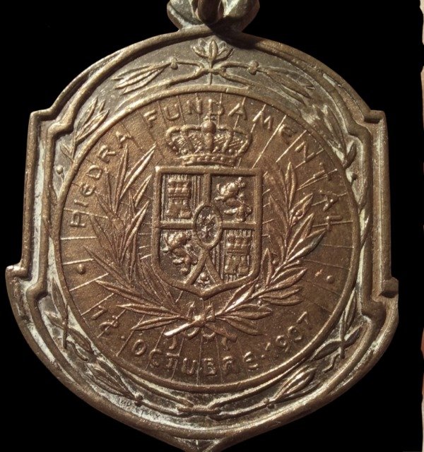 Reverso: PIEDRA FUNDAMENTAL / 12 · OCTUBRE · 1907. Firma: HORTA Y CIA.
