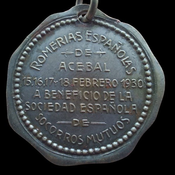 Reverso: ROMERIAS ESPAÑOLAS / DE / ACEBAL / 15, 16, 17 Y 18 FEBRERO 1930 / Á BENEFICIO DE LA / SOCIEDAD ESPAÑOLA / DE / SOCORROS MUTUOS
