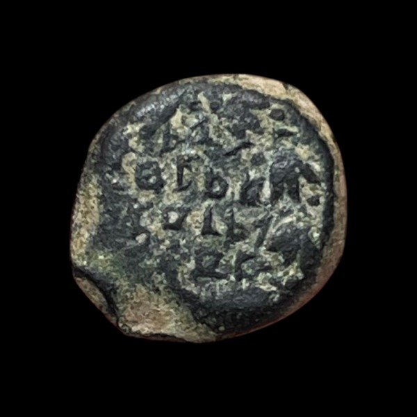 Anv: Inscripción con guirnaldas de olivos "Yehonatan, el sacerdote supremo y el consejo de los judios"