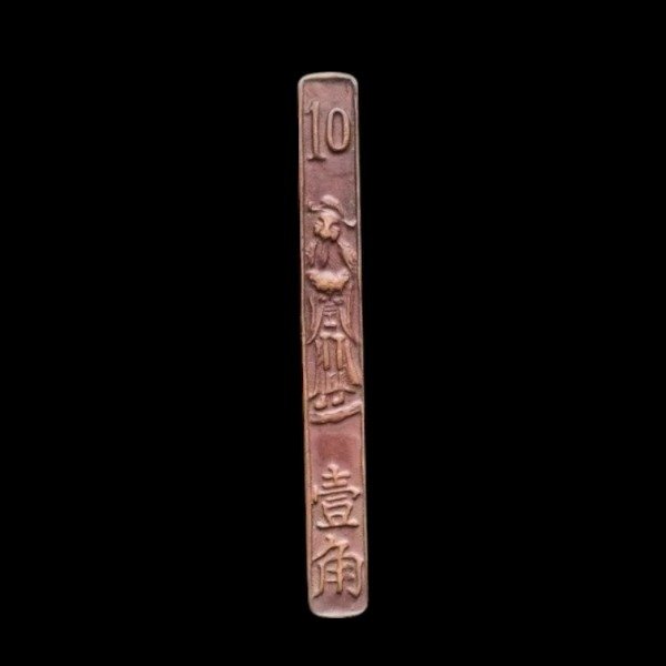 Las varillas de bronce de 10 “cash” emitidas en la ciudad de Minghuang, en la provincia de Jiangsu, representan un tipo singular de dinero local o moneda fiduciaria metálica que circuló en China durante el siglo XIX, en un período caracterizado por la escasez de numerario y la proliferación de emisiones regionales.